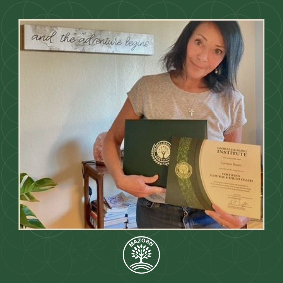 “Since I was a child, I knew my purpose in life was to help people. After becoming a Certified Natural Health Coach through the Mazorn Healing Institute, I feel exhilarated to have stepped into my calling—helping people heal themselves and, accordingly, humanity.”